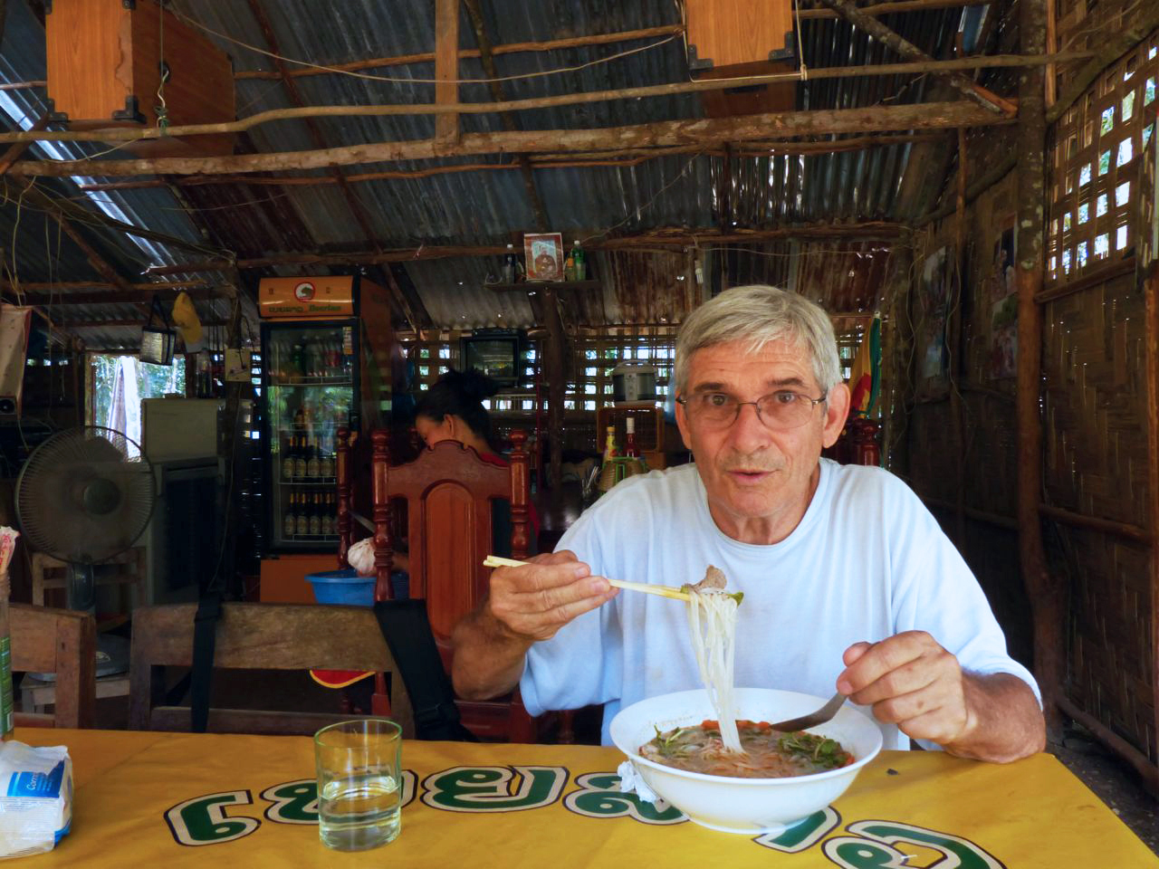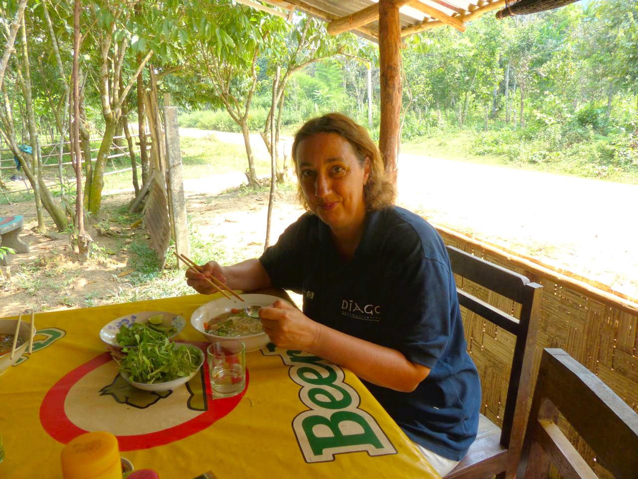 The woman there used to work in the party part of town and spoke good English. We had a great time talking to her and she instructed us on both cooking techniques and speaking Lao.