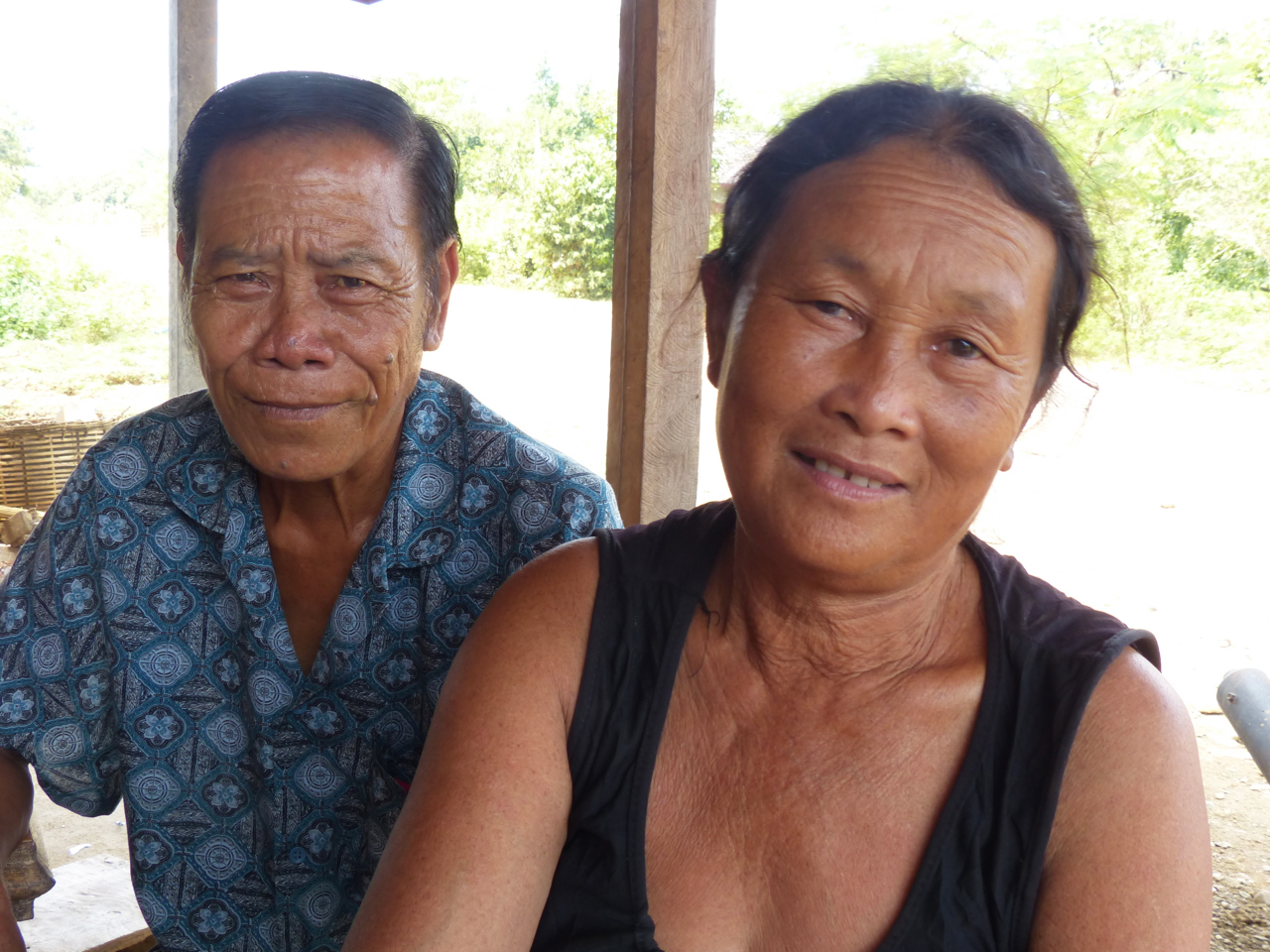 We rode on go the next village where a large group sat around a table in front of a hut that was the local store. We sat with them signing our ages and in general laughing with them as Michel used his camera to communicate. It was a wonderful time. Most of them did not want to be photographed but this couple in their 50s did not mind.
