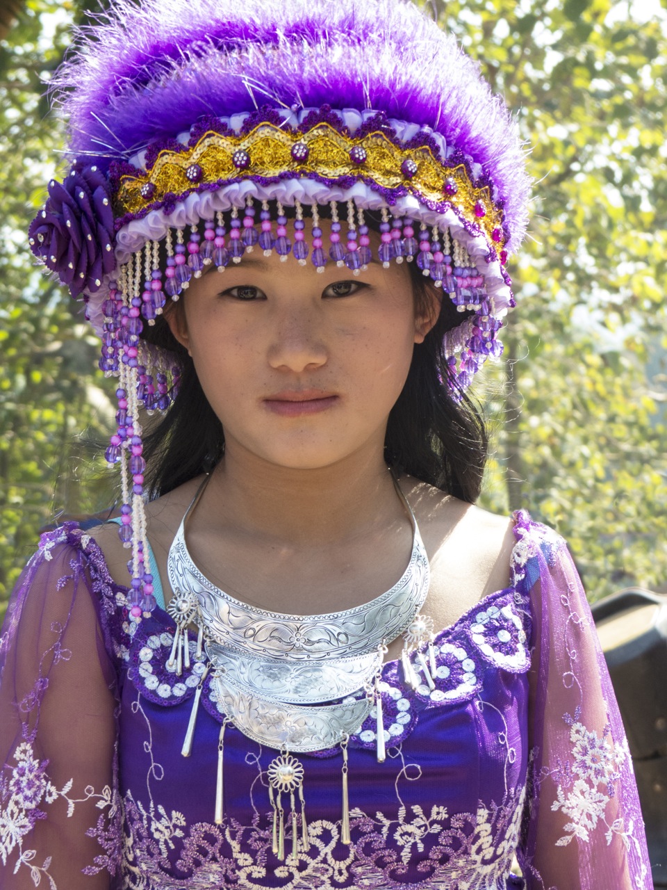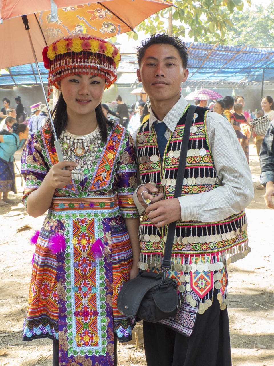 What makes these pictures and this festival so exciting is the authenticity of the clothing. The Hmong have been making these costumes using these colors and styles for generations. The colors are more vibrant now that they are no longer using natural dyes. The fabrics are not all made from local materials. But the tradition of the patterns and the styles represent the Hmong tribe that these people come from. The customs and the costume styles have been passed down for generations.