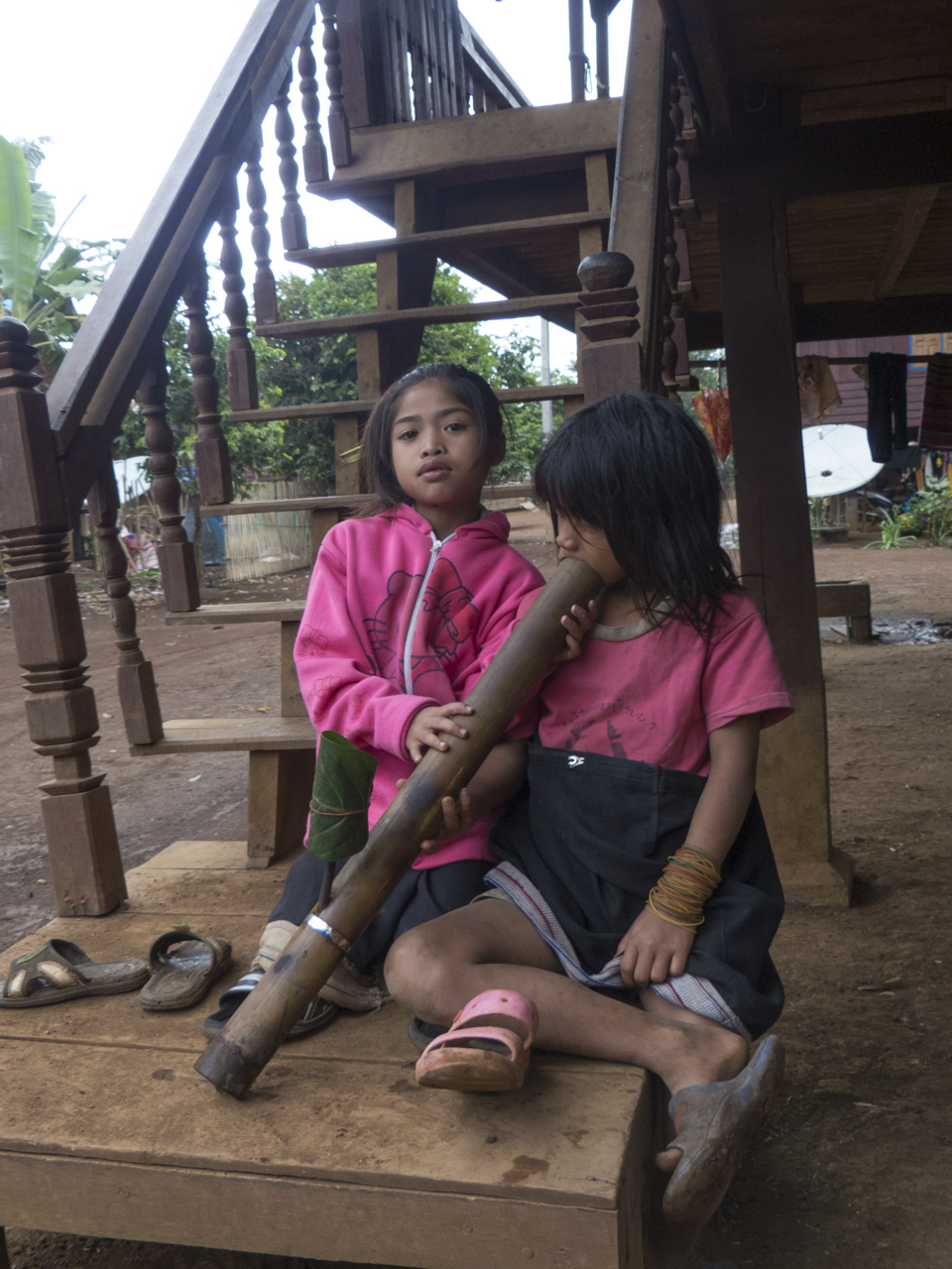 Aod has been a guide for 6 years. During that time he has been able to observe the decline of the ethnic minorities on the Boloven Plateau and is concerned about how quickly the change is coming. Most villages have electricity now and are connected by good roads, very different from 6 years ago. Televisions are watched daily in even some of the primitive huts. Gang signs and gang behavior are mimicked by young children and teenagers everywhere in Laos. Traditional music and instruments may be lost as they are replaced by Rapp, Pop music, and karaoke.