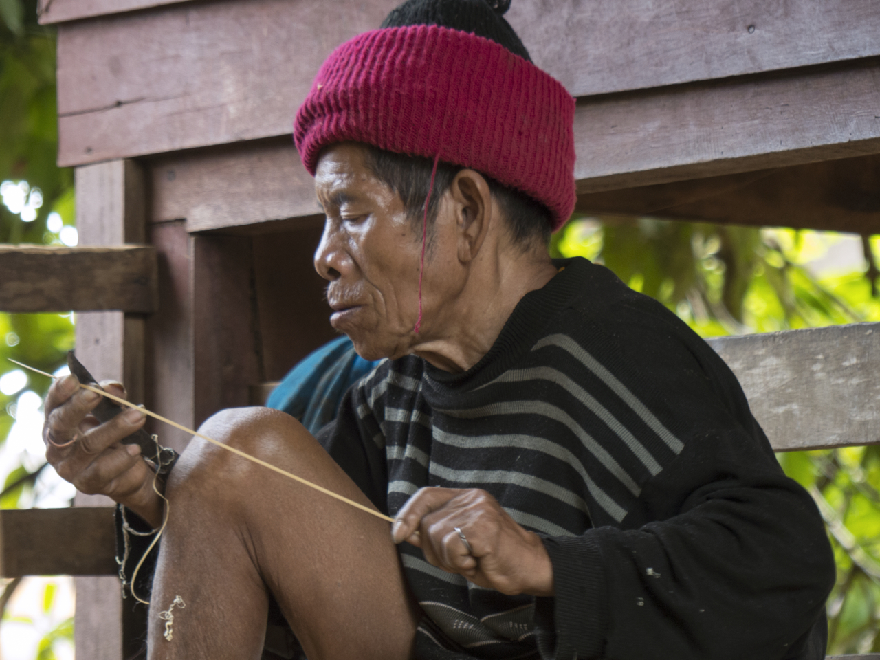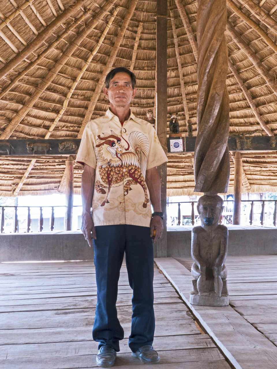 After a visit to the market and a few hours in the van we arrived at the Katu village of Ban Kandon. We were all invited to come in the chief’s home to sit for a while and talk. The chief’s name is Wipad (weepad) and he is 66 years old. He changed cloths putting on his best dragon shirt (for guests) when we arrived. He has a calm manner but also authoritative. He is proud of his tribe and his customs. He expects to be treated with respect and as a leader. He was courteous and patient during our entire visit.