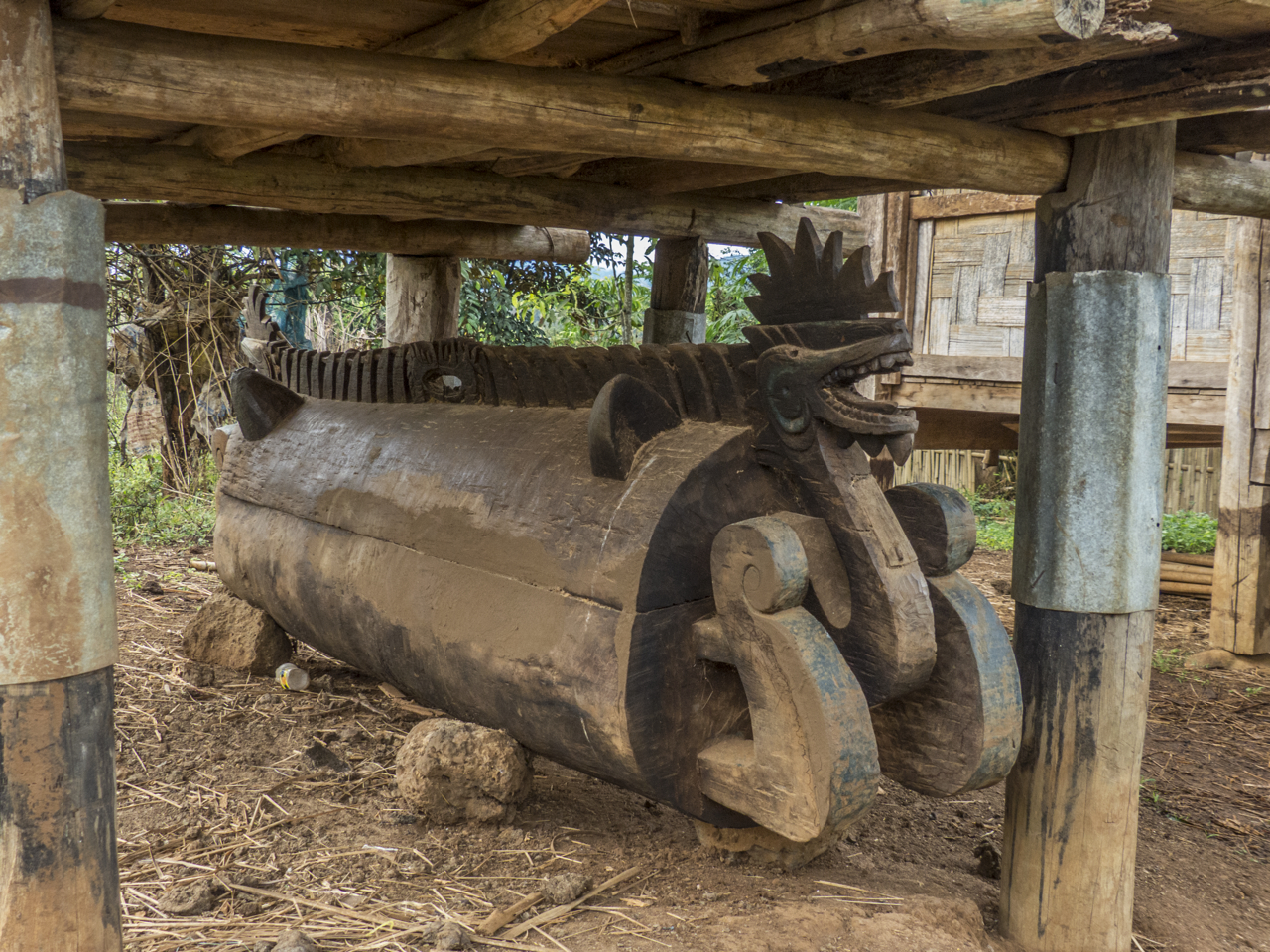 The second casket is more typical. The caskets are carved from large trees in the forest. Now that the village has moved down from the forest this custom is also difficult to sustain.