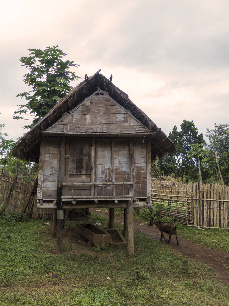 Wipad led us down a pristine dirt road through the village. Many of the homes are built of bamboo siding and tin roofs. Some of the people have prospered enough to build Laos wooden homes but there are still traditional Katu huts with bamboo siding and thatch roofs.