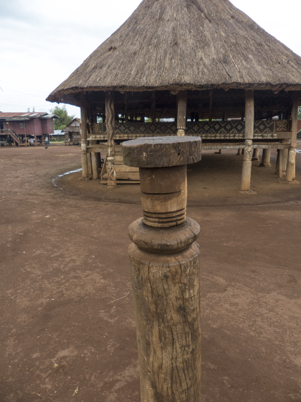 There are 3 shaman (holy men and women) in the village. If there is a problem with a family in the village a shaman places a long bamboo stick in front of their hut. That family must promise to sacrifice a buffalo on the annual day of sacrifice. They may have to sacrifice something else right away to avoid sickness. Maybe first something with two legs (ie; chicken) until a bigger 4 legged sacrifice may be made on the traditional day of sacrifice.