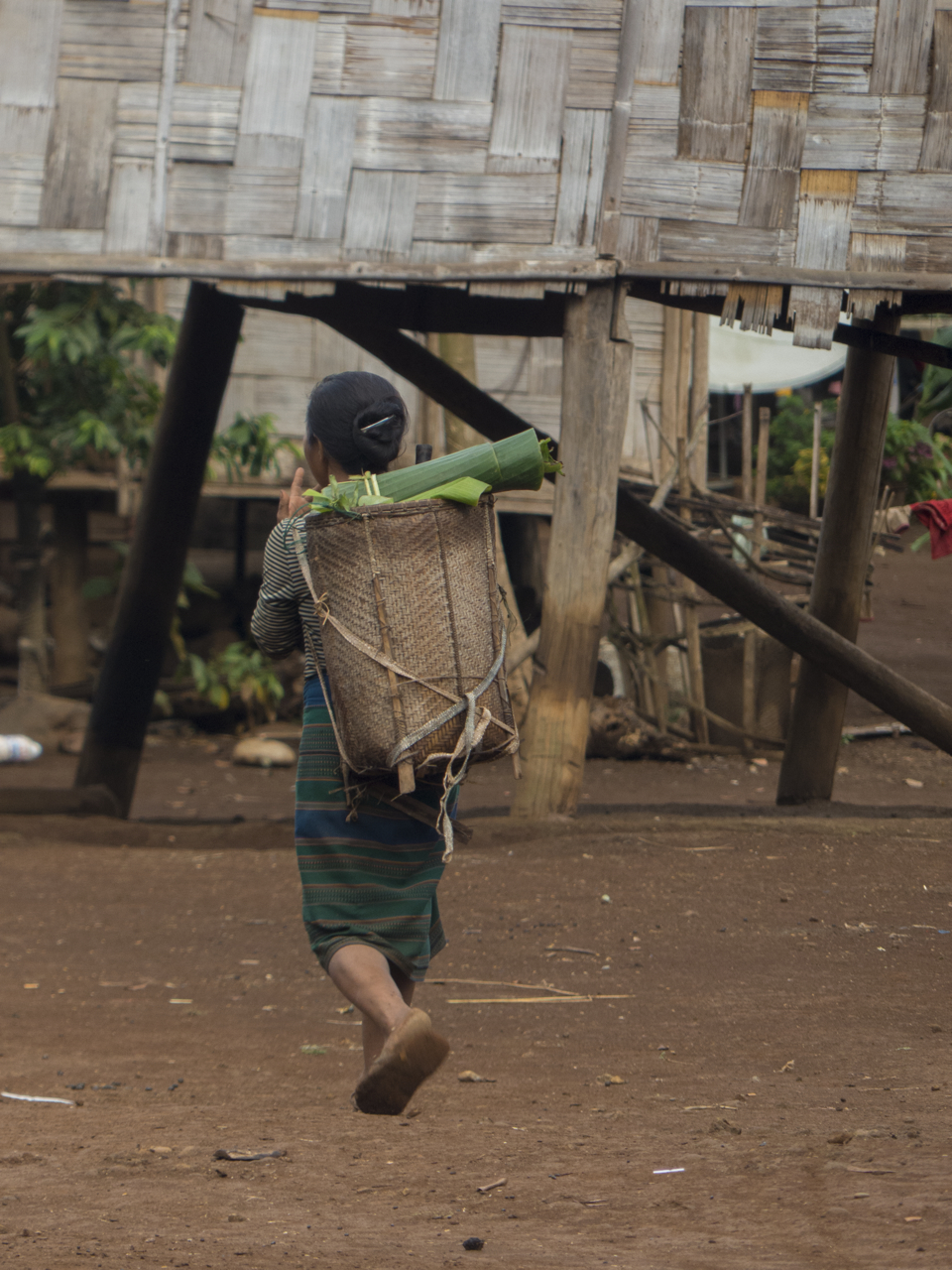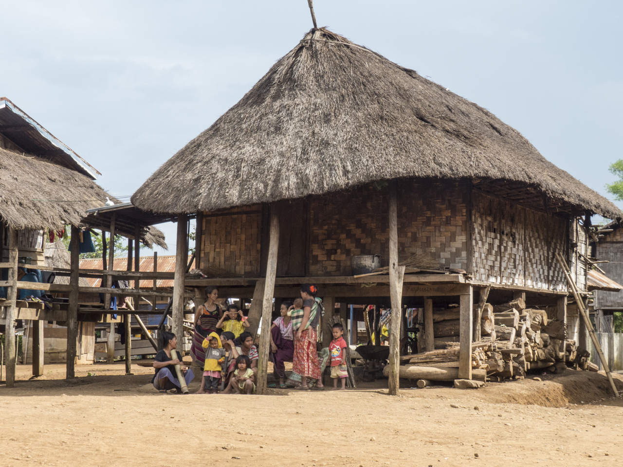We were invited back inside his home for a very tasty lunch. His wives had prepared multiple dishes with the vegetables and beef we had brought. Some of them were sweet and some spicy and they were served along side the traditional Laap and sticky rice. During lunch Wipad provided more information. He has been chief for 15 years. Last year during the festival of sacrifice 22 water buffalo were sacrificed. Neighboring tribes attended and the meat was shared among all of them. There are about 1500 people in the village now, 589 of them are women. There are currently 301 children attending the local school with 7 teachers. Children start school at age 5.