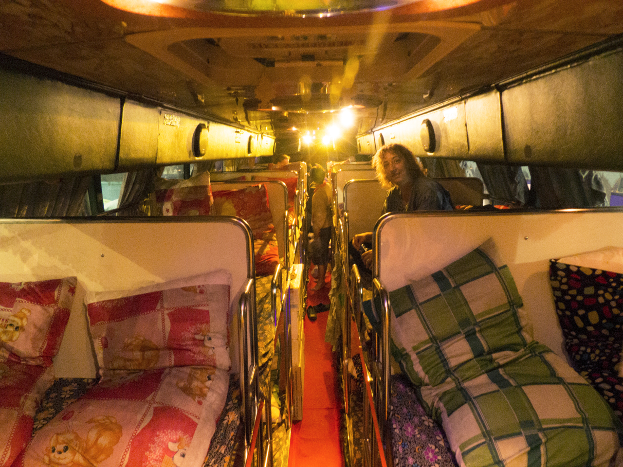 Claire waiting for Michel to come to bed on our overnight bus ride