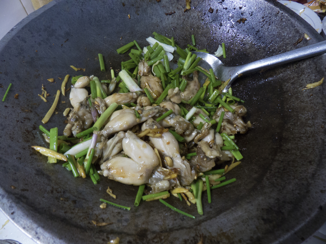 Our second meal at Etienne’s place was Frog Legs with Ginger and scallions. Ginger, we discovered, is another perfect compliment to the mild and juicy frog leg meat.