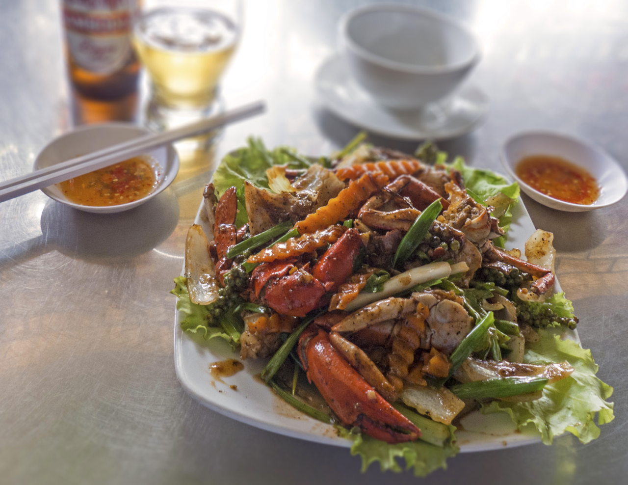 But the key ingredient is the sauce. It is made of lime, local fresh salt, a pinch of palm sugar, and ground Kampot pepper. You can really taste the freshness of the pepper in the sauce.