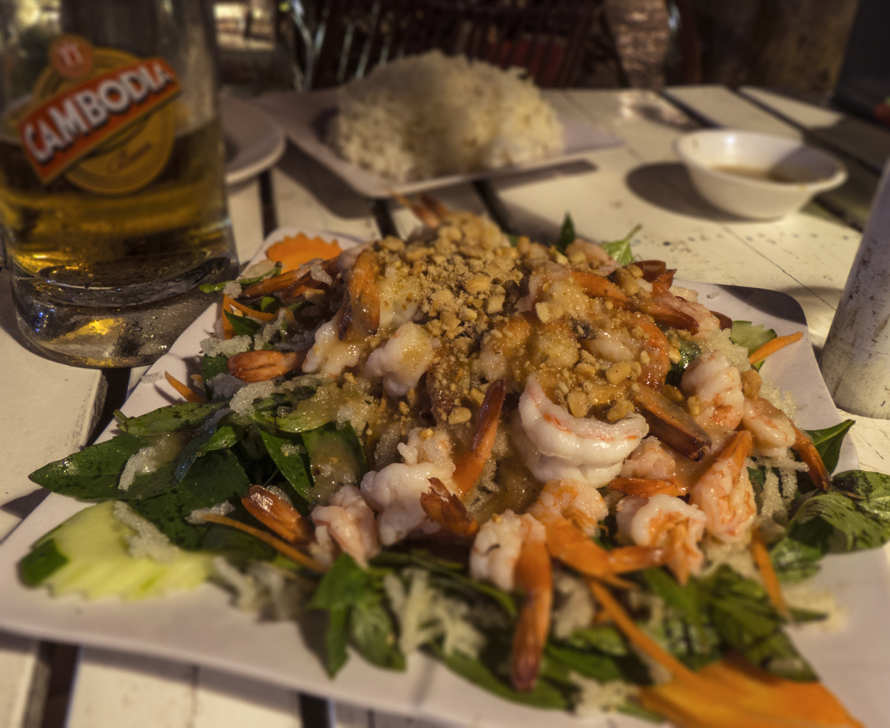 Ah salt! Ah pepper! I never really understood you before. Right outside of Kampot are fields of pepper and beds of salt. The local women all have their own special bottle full of dried local salt mixed with pepper in their own preferred quantities waiting for you on the table. So many years of eating Morton’s salt and pepper, how was I to know that it would make food taste this good. Also, they cook their food with fresh pepper corns. A subtle hearty taste with a tiny bit of heat.