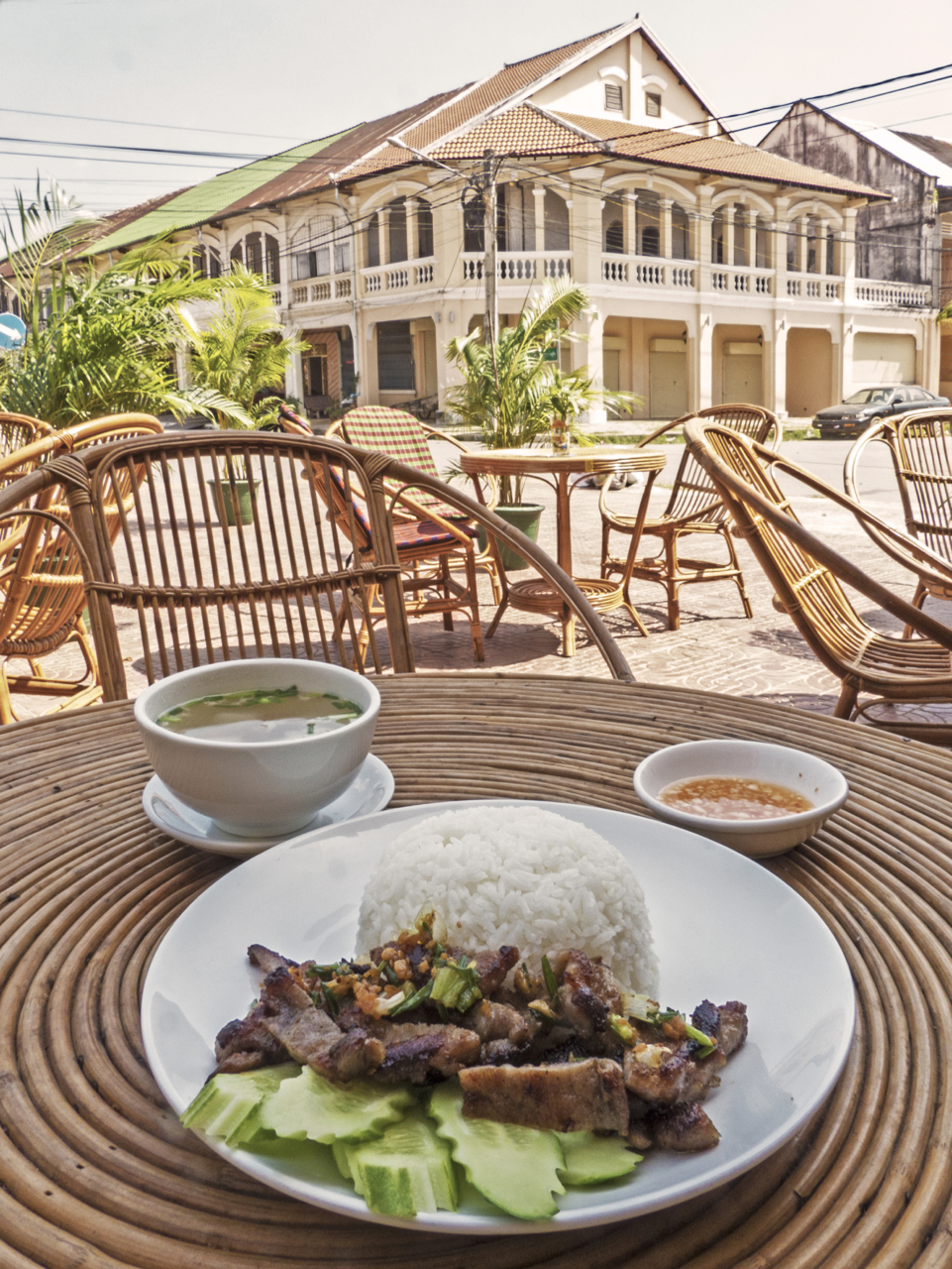 We were referred to another restaurant on a dark street where no tourists go. It it large like a warehouse and the customers actually park their motorbikes in the restaurant. Sit down at one of the tables and order the Crab with Green Pepper Sauce. The city of Kep near to Kampot is well known for its crab and no doubt it was Kep Crab that we were eating that night. The green pepper corns in the tamarind based sauce create a savory mildly spicy flavor. We went back for this one more than one time.