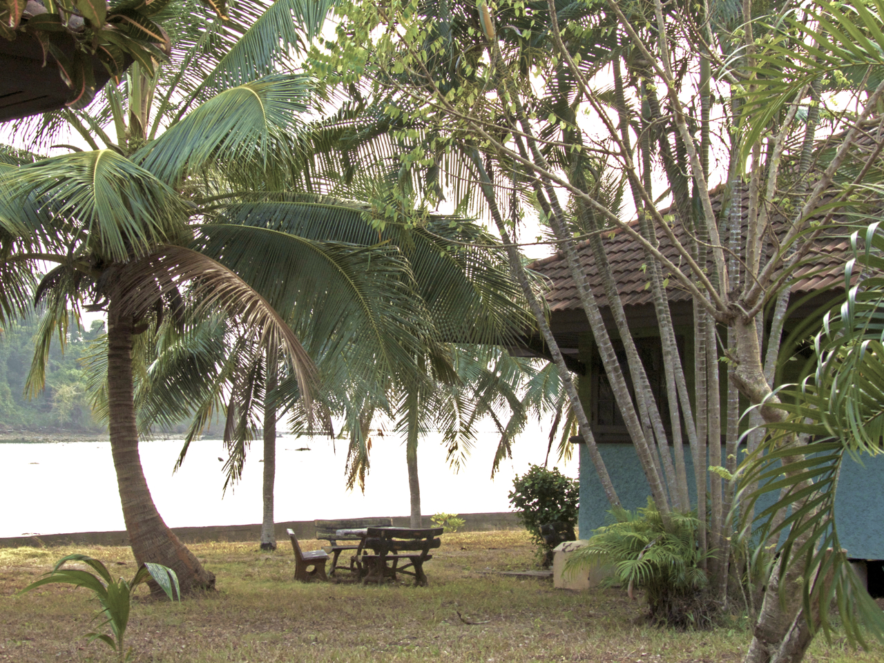 On the mainland, across from the island Koh Chang in Thailand, there is a deserted resort for sale. There are 8 bungalows and a main house. The property is on a large piece of land that sticks out into a beautiful bay. The water is clear and blue green. The garden is beautiful as it is full of mature bamboo and large trees.