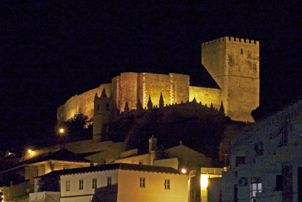 Mertola castle walls at night