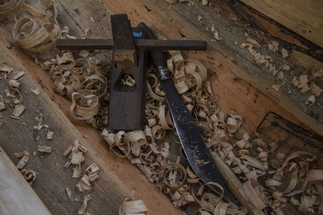 Michel went exploring and found this man building a canoe. The man started with a tree trunk, cut this wood, and will build the boat from scratch using rustic tools.