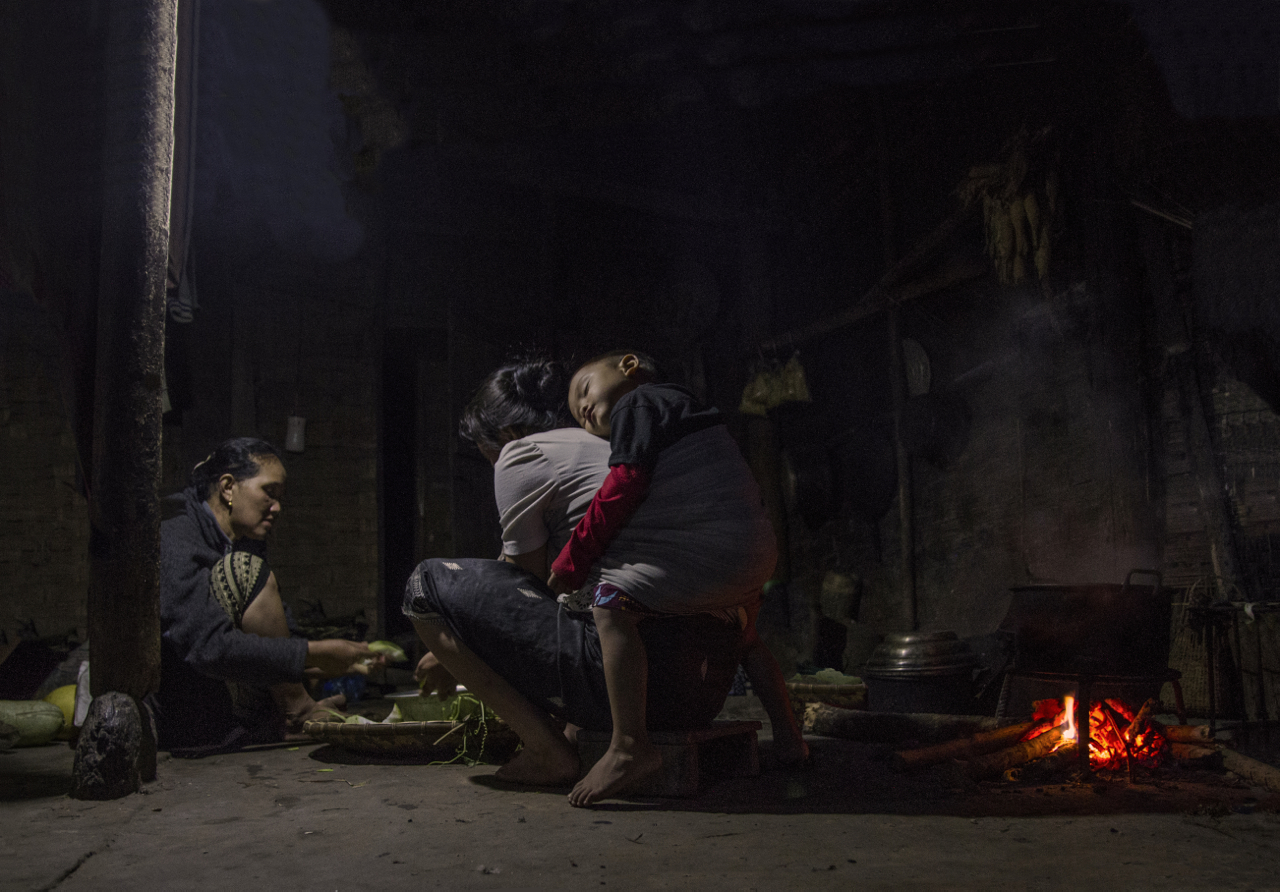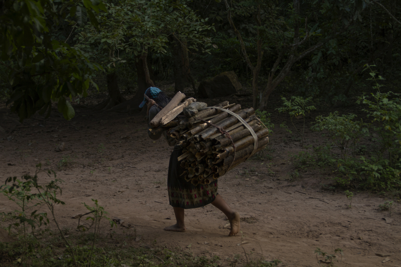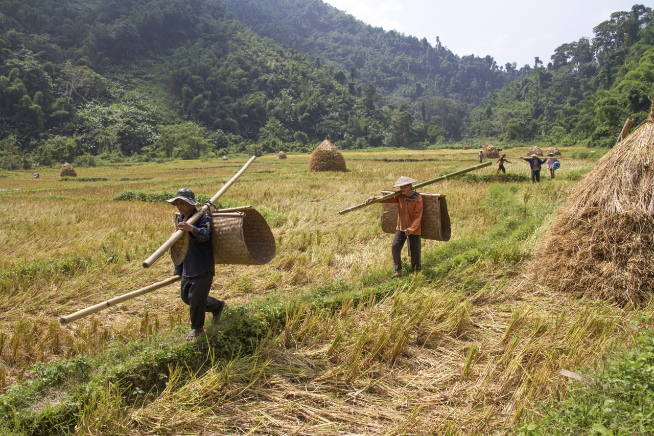 The heavy bags of rice that are made during the harvest must be carried back over the mountain and down to the river. There are no sick days, no excuses to avoid the hard work. Everyone must perform their part of the labor in order to take care of the village and the rice.