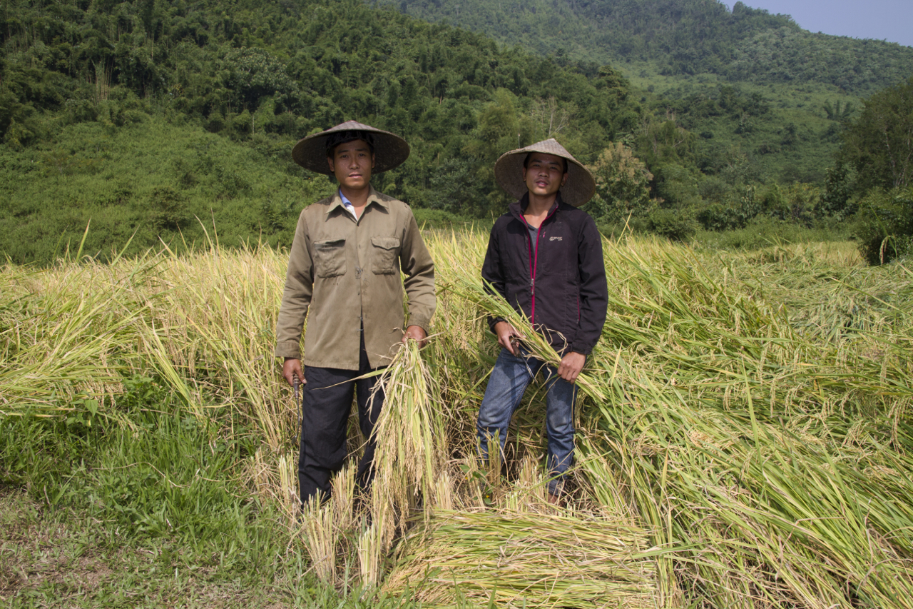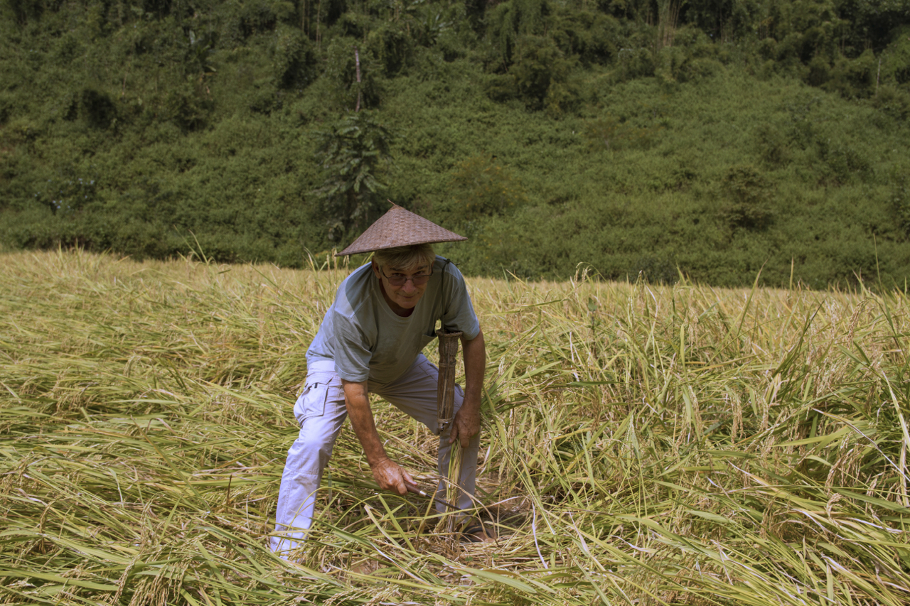 It is rice harvest season now and most village people are working and living in the rice fields during this time. We dropped our bags off at Yan’s house (sister of Mr Mang) and headed back to the river. Our plan was to cross the river and hike up to the rice fields for the day.