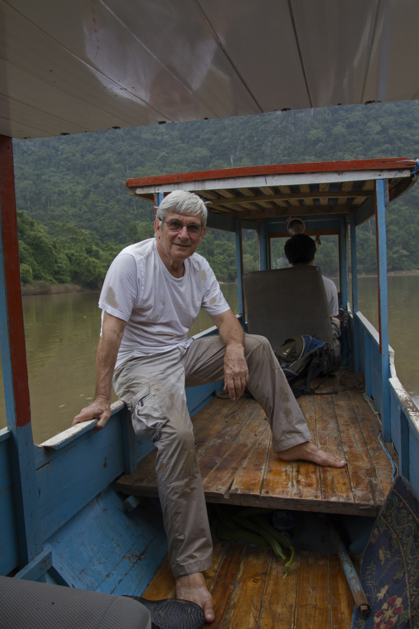 We decided to stay at a different guesthouse this year called Nam Ou River Lodge. It has a good location on the Nam Ou with simple clean rooms and a large shared balcony for 80,000 kip in this season. The owners name is Mr Mang, an energetic young man with a wife and two children. We talked with him about possible things to do during our stay and Mr Mang offered a boat ride to his home village called Ban Sop Jam. We love our boat rides, especially up the Nam Ou, (see blog post Up the river to Hat Sa) and we had heard about this village before so we were happy to go.