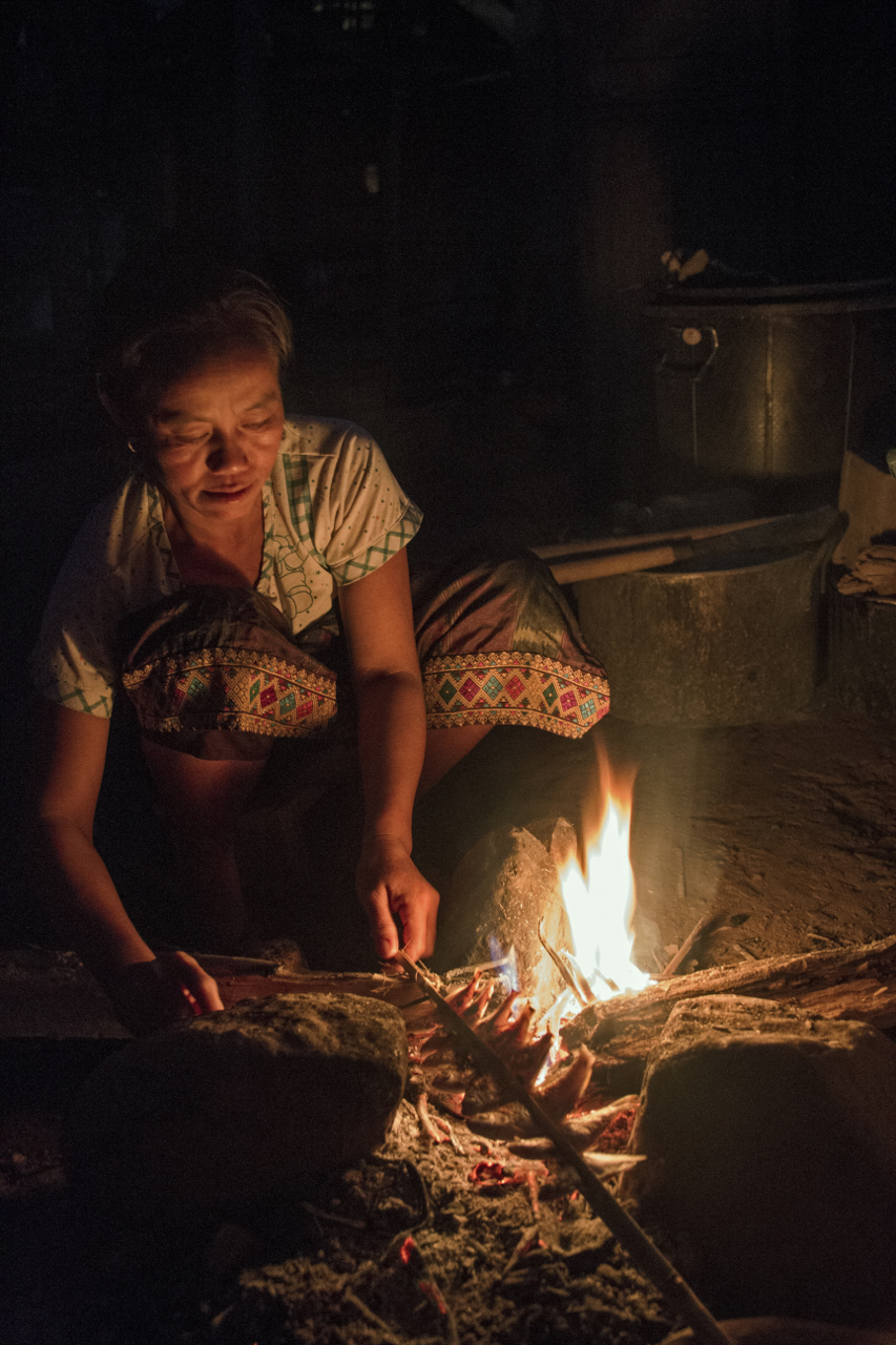 We spent the evening in Yan’s little house eating a delicious chicken dinner with sticky rice and vegetable soup. Yan was very kind to us during our stay. She had worked very hard in the rice fields all day and would not have come back to the village except that we were visiting. She was in pain that night and signed she had a headache during dinner.