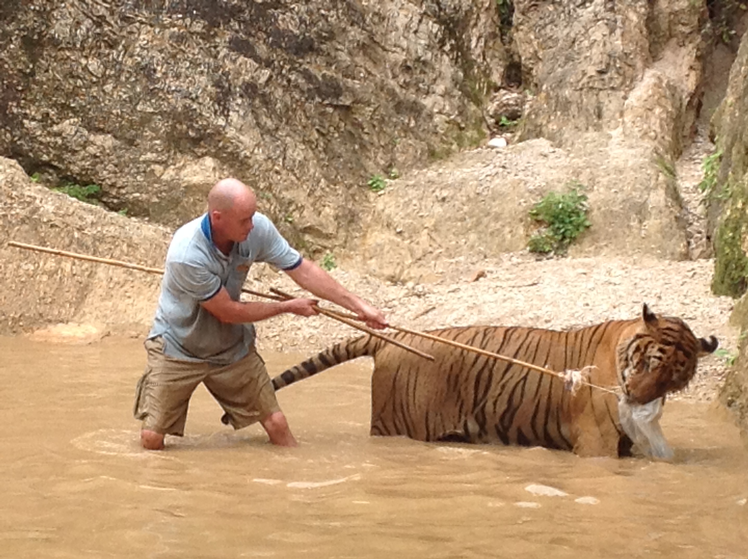 I was always aware of how big and heavy the tigers were while around them. Never any doubt in my mind that if I was accidently mistaken for a toy it would not be fun but the handlers did a good job of keeping the tigers on their side of the line.